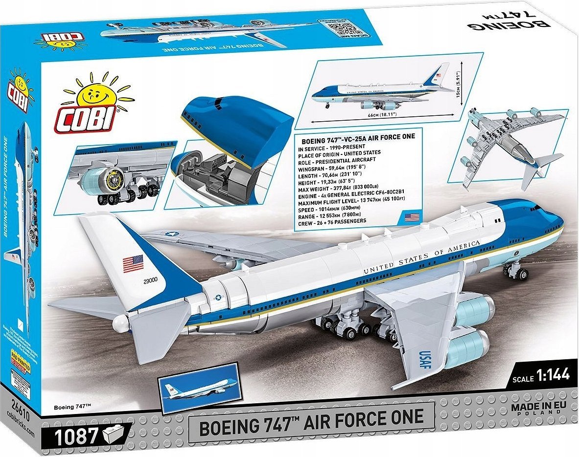 Στρατιωτικό προεδρικό αεροσκάφος Boeing 747 Air Force One 26610Air Force One είναι η κωδική ονομασία που δόθηκε στο αεροσκάφος της Πολεμικής Αεροπορίας των ΗΠΑ που μεταφέρει τον εν ενεργεία Πρόεδρο των Ηνωμένων Πολιτειών. Το Boeing VC-25 είναι μια στρατιωτική έκδοση του αεροσκάφους Boeing 747, έχει τροποποιηθεί σε μεγάλο βαθμό για προεδρικές μεταφορές και χρησιμοποιείται ευρέως από την Πολεμική Αεροπορία των Ηνωμένων Πολιτειών (USAF) ως Air Force One. Το πλήρωμα του Air Force One αποτελείται από έμπειρους πιλότους και πλήρωμα καμπίνας που είναι κατάλληλα εκπαιδευμένοι για να χειρίζονται αυτό το μοναδικό μηχάνημα. Το αεροπλάνο είναι ικανό για πτήσεις μεγάλων αποστάσεων, παρέχοντας στον Πρόεδρο των Ηνωμένων Πολιτειών γρήγορα και ασφαλή διεθνή και εσωτερικά ταξίδια Το μπλοκ μοντέλο του πιο σημαντικού Jumbo Jet στον κόσμο αποτελείται από 1.087 στοιχεία. Το προεδρικό αεροπλάνο αναπτύχθηκε σε κλίμακα μοντελοποίησης 1:144. Μόλις κατασκευαστεί, το αεροπλάνο έχει μήκος 46 cm και άνοιγμα φτερών 42 cm! Οι κινητήρες περιέχουν κινητές τουρμπίνες που μπορούν να κινηθούν. Ο πολύ χαρακτηριστικός πίνακας που περιέχει σημάνσεις USAF και εθνικά σύμβολα των ΗΠΑ έχει αναπαραχθεί λεπτομερώς χρησιμοποιώντας εκτυπώσεις υψηλής ποιότητας. Δεν θα βρείτε αυτοκόλλητα σε αυτό το σετ! Τα ειδικά σχεδιασμένα στοιχεία κάνουν το μοντέλο να ενθουσιάζει όχι μόνο τους μπλοκ μοντελιστές, αλλά και τους λάτρεις της αεροπορίας όλων των ηλικιών! Φτιάξτε το δικό σας Air Force One και νιώστε το κύρος του Προέδρου των Ηνωμένων Πολιτειών της Αμερικής Χαρακτηριστικά του σετ: 1.087 στοιχεία υψηλής ποιότητας, που κατασκευάζονται στην ΕΕ από μια εταιρεία με πάνω από 20 χρόνια παράδοση, πληρούν τις προδιαγραφές ασφαλείας για τα παιδιά! προϊόντα, πλήρως συμβατά με άλλες μάρκες κατασκευής μπλοκ, μπλοκ με εκτυπώσεις δεν παραμορφώνονται και δεν ξεθωριάζουν κατά το παιχνίδι ή υπό την επίδραση της θερμοκρασίας, κινητά στοιχεία, Διαστάσεις μοντέλου (μήκος x πλάτος x ύψος): 46 cm (18,1”) x 42 cm (16,54”) x 15 cm (5,91”) Προδιαγραφές σετ: Αρ.: COBI-26610 Κατασκευαστής: Cobi Factory SA Μήκος: 46 cm / 18,11 ίντσες Ύψος: 15 cm / 5,9 πλάκες. 42 cm / 16,54” Κλίμακα: 1:144 Ποσότητα μπλοκ: 1087 Ηλικιακή ομάδα: 9+{Για ποιον} Για ένα αγόρι. {Για ποιον} Για ένα αγόρι. {Για ποιον} Για ένα αγόρι. {Για ποιον} Για ένα αγόρι. {Για ποιον} Για ένα αγόρι. {Για ποιον} Για ένα αγόρι. {Για ποιον} Για ένα αγόρι. {Για ποιον} Για ένα αγόρι. {Για ποιον} Για ένα αγόρι. {Για ποιον} Για ένα αγόρι. {Για ποιον} Για ένα αγόρι. {Ηλικία} Από 3 ετών. {Ηλικία} Από 3 ετών. {Ηλικία} Από 3 ετών. {Ηλικία} Από 3 ετών. {Ηλικία} Από 3 ετών. {Ηλικία} Από 3 ετών. {Ηλικία} Από 3 ετών. {Ηλικία} Από 3 ετών. {Ηλικία} Από 3 ετών. {Ηλικία} Από 3 ετών. {Ηλικία} Από 3 ετών. {Αριθμός αριθμών} Δεν υπάρχουν δεδομένα. {Αριθμός αριθμών} Δεν υπάρχουν δεδομένα. {Αριθμός αριθμών} Δεν υπάρχουν δεδομένα. {Αριθμός αριθμών} Δεν υπάρχουν δεδομένα. {Αριθμός αριθμών} Δεν υπάρχουν δεδομένα. {Αριθμός αριθμών} Δεν υπάρχουν δεδομένα. {Αριθμός αριθμών} Δεν υπάρχουν δεδομένα. {Αριθμός αριθμών} Δεν υπάρχουν δεδομένα. {Αριθμός αριθμών} Δεν υπάρχουν δεδομένα. {Αριθμός αριθμών} Δεν υπάρχουν δεδομένα. {Αριθμός αριθμών} Δεν υπάρχουν δεδομένα