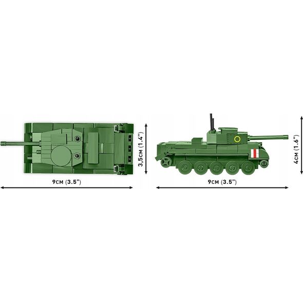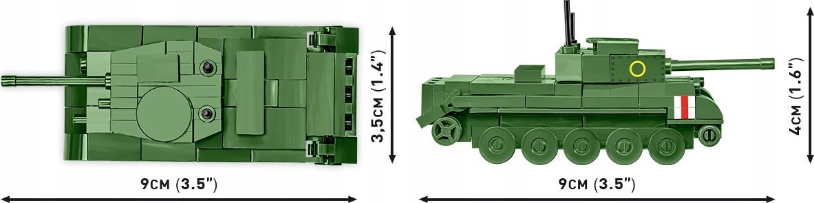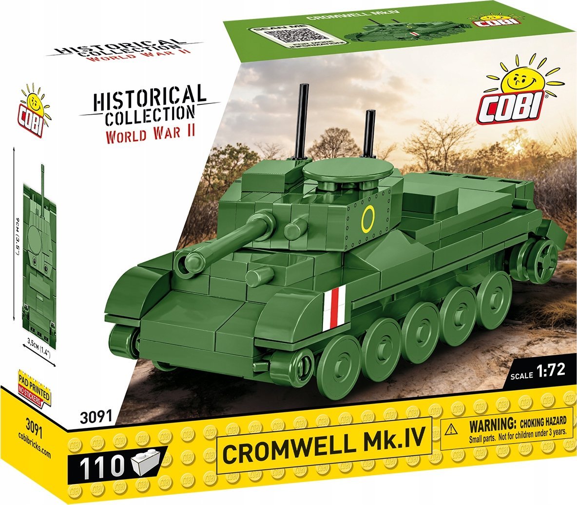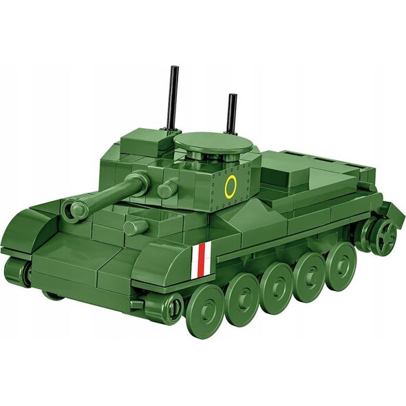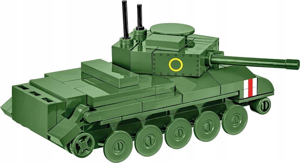 KLOCKI COBI 3091 Czołg Cromwell Mk.IV HC WW2 110 El.SPECYFIKACJA PRODUKTU: Marka: Cobi Seria: Historical Collection World War II Ilość elementów: 110 szt. Ruchome elementy: Tak Wymiary modelu (dł./szer./wys.): 9 cm / 3,5 cm / 4 cm Skala modelu: 1:72 /szer./wys.): 17 cm / 14 cm / 5 cm Zawiera instrukcje obsługi: Tak Grupa wiekowa: 6+ Klocki Cobi to wysokiej jakości, estetycznie zapakowane zestawy klocków idealne na prezent. Produkowane w Polsce Wspieraj rozwój swojego dziecka. Zabawa klockami Cobi wzbogaca kreatywność, logiczne myślenie i zdolności manualne. Budowanie z klocków to również rozwój małej motoryki oraz wobraźni małego konstruktora. Klocki tej marki to nie tylko produkt dla dzieci, to przede wszystkim wysokiej jakości klocki, z których ucieszy się każdy pasjonata militariów, lotnictwa itp. Klocki Cobi są odwzorowaniem realnych modeli. Zestawy produkowane są w różnej skali, część z nich zawiera espozytor dzięki czemu możesz zbudować piękną kolekcję. 110 wysokiej jakości elementów, wyprodukowane w UE przez firmę z ponad 20-letnią tradycją, spełniają normy bezpieczeństwa dotyczące produktów dla dzieci, w pełni kompatybilne z innymi markami klocków konstrukcyjnych, klocki z nadrukami nie odkształcają się i nie bledną w czasie zabawy czy pod wpływem temperatury, Wymiary modelu (dł x szer x wys): 9 cm (3.5”) x 3,5 cm (1.4”) x 4 cm (1.6”)Cromwell Mk.IV to brytyjski czołg średni używany podczas II wojny światowej. Został wprowadzony do służby w 1944 roku i był wykorzystywany głównie przez Brytyjskie Korpusy Pancerne. Czołg ten był znany ze swojej szybkości i manewrowości, co pozwalało mu skutecznie operować na polu bitwy. Cromwell był wyposażony w działo główne kalibru 75 mm oraz silnik Rolls-Royce Meteor o mocy 600 KM. Zapewniało mu to dobrą siłę ognia praz mobilność i możliwość szybkiego przemieszczania się na różnych rodzajach terenu. Cromwell Mk.IV odegrał istotną rolę w kampanii w Normandii oraz w późniejszych operacjach alianckich w Europie Zachodniej. Czołgi tego typu były również wykorzystywane przez 1 Dywizję Pancerną (1 DPanc., ang. 1st Polish Armoured Division, tzw. Czarne Diabły) Polskich Sił Zbrojnych na Zachodzie w czasie II wojny światowej!Kompatybilne z innymi znanymi markami klocków.Mini model z klocków konstrukcyjnych COBI został zaprojektowany w skali 1:72 i składa się ze 110 wysokiej jakości elementów. Po zbudowaniu czołg ma 9 cm długości. Pomimo kompaktowego rozmiaru model doskonale zachował wszystkie najważniejsze cechy swojego historycznego pierwowzoru! Na bokach pojazdu znajdują się nadrukowane oznaczenia brytyjskie. Czołgiem można poruszać dzięki zamontowanym kółkom. Również wieża czołgu jest ruchoma i można nią obracać.Model nadaje się w sam raz na dobry początek przygody z klockami konstrukcyjnymi COBI. Cromwell Mk.IV to również ciekawy model i gadżet dla kolekcjonerów. Zajmuje niewiele miejsca i z łatwością znajdzie swoje miejsce na biurku w domu, w pracy czy też na regale z książkami.Jeżeli jesteś zaawansowanym klockowym konstruktorem, to model dostarczy Ci bardzo ciekawych elementów. Wyraź swoją pasję poprzez klocki i buduj historię klocek po klocku!