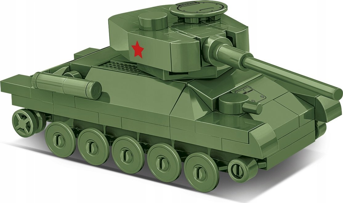 HC WWII T-34-85 Cobi COBI-3092 T-34-85 HISTORICAL COLLECTION WORLD WAR II 110 klocków 0 figurek Skala 1:72 Grupa wiekowa 6+ T-34-85 to radziecki czołg średni produkowany w latach 1941-1958. W okresie II wojny światowej odgrywał rolę podstawowego czołgu radzieckich sił pancernych. Z uwagi na niezwykle prostą konstrukcję był bardzo łatwy w produkcji, użytkowaniu i naprawie. Wielu historyków uznaje, że czołg T-34-85 walnie przyczynił się do zwycięstwa państw alianckich w drugiej wojnie światowej. Pojazd był używany przez dziesiątki państw jeszcze przez wiele lat po zakończeniu światowego konfliktu. Mini model z klocków konstrukcyjnych COBI został zaprojektowany w skali 1:72 i składa się ze 110 wysokiej jakości elementów. Po zbudowaniu czołg ma 10 cm długości. Pomimo kompaktowego rozmiaru model zachował wszystkie najważniejsze cechy swojego historycznego pierwowzoru! Na bokach wieży znajdują się nadruki z oznaczeniami Armii Czerwonej. Czołgiem można poruszać dzięki zamontowanym kołom. Również wieża czołgu jest ruchoma i można nią obracać. Model nadaje się w sam raz na dobry początek przygody z klockami konstrukcyjnymi COBI. T-34-85 to również ciekawy model i gadżet dla kolekcjonerów. Zajmuje niewiele miejsca i z łatwością znajdzie swoje miejsce na biurku w domu, w pracy czy też na regale z książkami. Jeżeli jesteś zaawansowanym klockowym konstruktorem, to model dostarczy Ci bardzo ciekawych elementów. Wyraź swoją pasję poprzez klocki i buduj historię klocek po klocku!Kategoria wiekowa: 6+ Wydawnictwo/Producent: Cobi Rok wydania: pudełko,139x174 mm