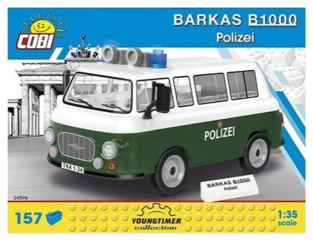 Ένα φορτηγό παράδοσης και ένα μικρό λεωφορείο που κατασκευάστηκαν τα έτη 1961–1991 στην πρώην ΛΔΓ. Το μοναδικό αυτοκίνητο αυτής της κατηγορίας που παράγεται στην Ανατολική Γερμανία. Τα αυτοκίνητα Barkas χρησιμοποιούνταν κυρίως στη ΛΔΓ. Η έκδοση microbus Polizei έχει προσαρμοστεί στις ανάγκες της αστυνομίας, έχουν τοποθετηθεί προειδοποιητικά φώτα και σειρήνες και το εσωτερικό έχει τροποποιηθεί Χρησιμοποιώντας ένα σύνολο κατασκευαστικών μπλοκ COBI που περιέχει έως και 157 στοιχεία, μπορείτε να κατασκευάσετε ένα αυτοκίνητο Barkas. αστυνομική εκδοχή. Το μοντέλο αναπαρήχθη πιστά σε κλίμακα 1:35. Το σετ δεν περιλαμβάνει αυτοκόλλητα εντελώς. Τα μπλοκ καλύπτονται με εκτυπώσεις υψηλής ποιότητας που δεν φθείρονται ακόμη και κατά τη διάρκεια του έντονου παιχνιδιού. Το σετ έχει προσεγμένη, συμπαγή δομή και κινητούς τροχούς. Σίγουρα θα βοηθήσει στην ανάπτυξη των κινητικών δεξιοτήτων των παιδιών και θα βελτιώσει τις κατασκευαστικές τους δεξιότητες. Για τους ενήλικες λάτρεις των μπλοκ, θα είναι ένα όμορφο μοντέλο ενός ιστορικού οχήματος και ίσως η αρχή μιας μελλοντικής συλλογής.