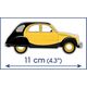 Παράγεται και βελτιώνεται συνεχώς μεταξύ 1949 και 1990, το Citroen 2CV έγινε σύμβολο της γαλλικής αυτοκίνησης. Το αυτοκίνητο σχεδιάστηκε πριν από τον πόλεμο. Η δημιουργία του σχετίζεται με την ανάγκη παραγωγής ενός απλού και φθηνού αυτοκινήτου για τις μάζες, σύμφωνα με το σύνθημα του διευθυντή της εταιρείας, Pierre Boulanger, «quatre roues sous un parapluie» (τέσσερις τροχοί κάτω από μια ομπρέλα). Το αυτοκίνητο ήταν όσο το δυνατόν πιο απλό, οικονομικό και επέτρεπε άνετη μεταφορά 4 ατόμων με αποσκευές. Ονομάστηκε το πιο άσχημο αυτοκίνητο στον κόσμο στο σαλόνι του Παρισιού το 1948, παρά τις απόψεις των κριτικών, έγινε αντικείμενο πόθου. Πάνω από 41 χρόνια παραγωγής, σχεδόν 4 εκατομμύρια μονάδες παρήχθησαν σε εργοστάσια σε όλο τον κόσμο. Σήμερα, αυτό το αυτοκίνητο έχει καθεστώς λατρείας και είναι μια απόλαυση για τους συλλέκτες. Το 1980 έκανε πρεμιέρα μια ειδική έκδοση του εμβληματικού αυτοκινήτου Citroen 2CV! Το περιορισμένο Charleston κατασκευάστηκε μόνο σε 8.000 αντίτυπα! Το αυτοκίνητο διακρίθηκε για το ελκυστικό, χαρακτηριστικό δίχρωμο αμάξωμα και το εσωτερικό του φινίρισμα Χρησιμοποιώντας 85 μπλοκ κατασκευής COBI, μπορείτε να κατασκευάσετε ένα μοντέλο του εμβληματικού Citroen 2CV Charleston, που αναπαράγεται τέλεια σε κλίμακα 1:35. Χάρη στη χρήση στοιχείων ειδικά σχεδιασμένων για αυτό το αυτοκίνητο, το σχήμα του αμαξώματος είναι όσο το δυνατόν πιο κοντά στο πρωτότυπο. Αξιοσημείωτα είναι επίσης τα εντελώς νέα εμπρός φωτιστικά, τα οποία σίγουρα θα χρησιμοποιηθούν σε πολλά μοντέλα της Ιστορικής Συλλογής COBI! Το αυτοκίνητο είναι εξοπλισμένο με 4 κινητές ρόδες και εκτυπώσεις βασικών λεπτομερειών. Η Citroen έχει μήκος 11 cm και ύψος 4,5 cm. Το σετ περιλαμβάνει μια πλακέτα με την υπογραφή του μοντέλου και το λογότυπο της CITROEN της εποχής! Οι τυπωμένες πινακίδες κυκλοφορίας παρουσιάζουν επίσης το όνομα του μοντέλου The Cobi Youngtimer Collection και η Historical Collection περιλαμβάνουν vintage αυτοκίνητα από τις μεγαλύτερες μάρκες αυτοκινήτων. Όλα τα αυτοκίνητα είναι σχεδιασμένα σε κλίμακα 1:35 και αποτελούν μια συνεκτική συλλογή ιδανική για παιδιά, εφήβους και ενήλικες που είναι παθιασμένοι με την ιστορία και την αυτοκινητοβιομηχανία - ιστορία κατασκευής, τούβλο προς τούβλο!