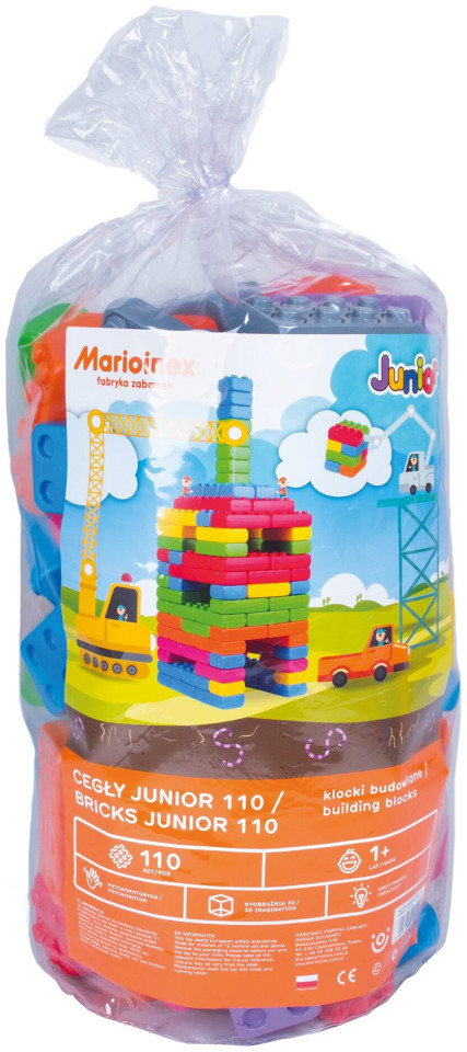 Οικοδομικοί λίθοι Bricks Junior 110 elementsΈνα σετ δομικών λίθων "BRICKS JUNIOR" που αποτελείται από 110 στοιχεία. Συσκευασία: τσάντα.{Για ποιον} Universal . {Αριθμός στοιχείων} 110 . {Ηλικία} Από 12 μηνών. {Σειρά} Junior . {Αριθμός αριθμών} Κανένα