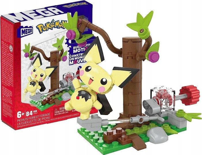 MEGA Pokemon Konstruktor przygód Zestaw Mix Zestaw klocków, HDL75Przygotuj się na wspaniałą zabawę z Pokemonami dzięki zestawowi konstrukcyjnemu Pokemon Pichu. Dzieci mogą zbierać jagody i bawić się w lesie z tym zestawem konstrukcyjnym zawierającym innowacyjny ruchomy klocek! Dzieci mogą złożyć leśną scenerię, a potem przekręcić korbkę i zobaczyć, jak Pichu zbiera jagody z krzaka. W połączeniu z innymi zestawami do budowania przygód można zbudować jeszcze większy świat Pokémonów z ruchomymi elementami. Można go łączyć z innymi zestawami Pokémon Mega Construx. Z Pokémon można stworzyć wspaniały świat gier bez ograniczeń!