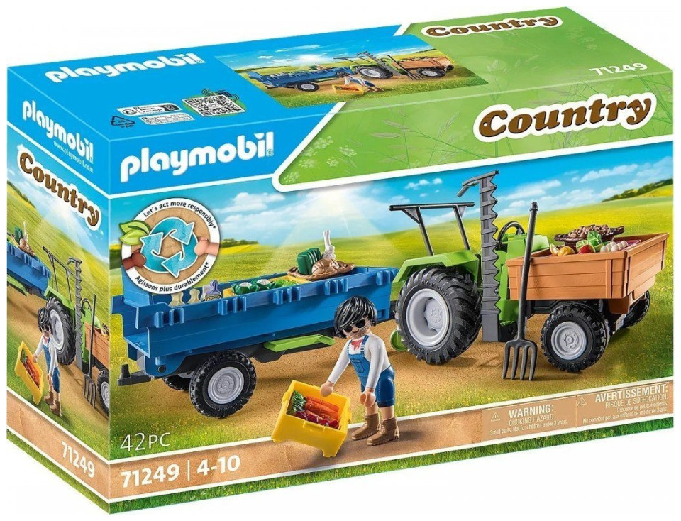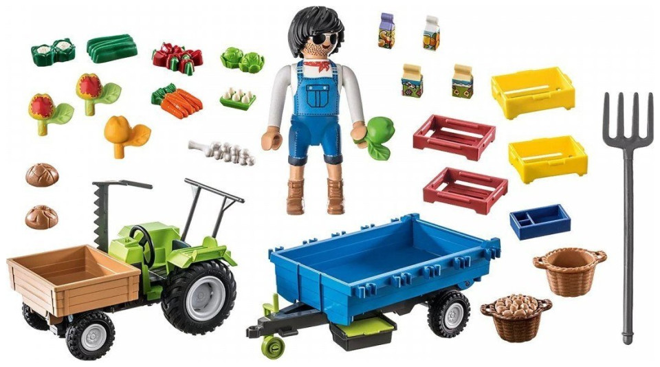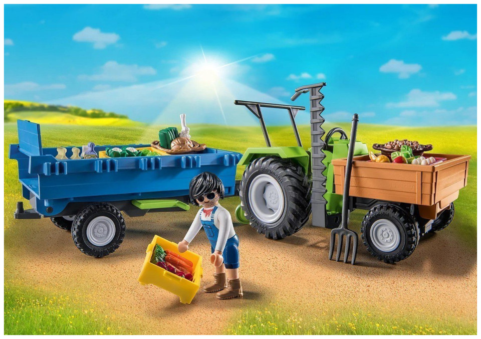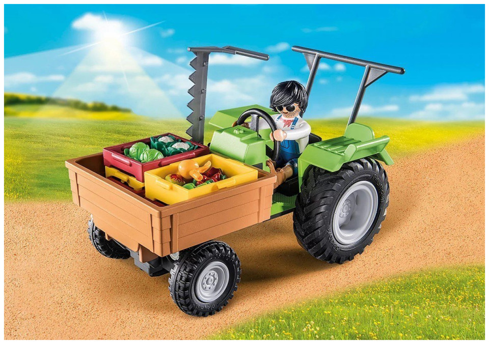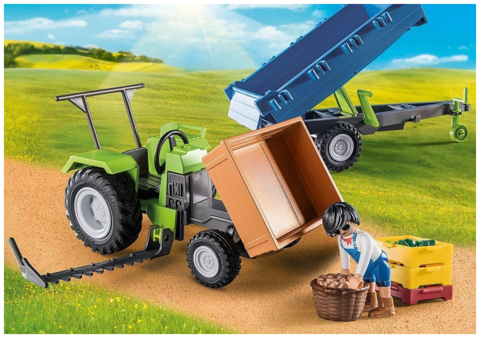 Βοηθήστε τον αγρότη να εργαστεί στο χωράφι με τη δροσερή θεριζοαλωνιστική μηχανή με τρέιλερ από την PLAYMOBIL. Με ρεαλιστικά χαρακτηριστικά, όπως ανακλινόμενο χώρο φόρτωσης και μεγάλα ελαστικά, το πράσινο τρακτέρ προσφέρει μια δημιουργική εμπειρία παιχνιδιού. Τα φρούτα και τα λαχανικά μαζεύονται φρέσκα από το χωράφι, τοποθετούνται σε κιβώτια αποστολής και μεταφέρονται στο Country Farm Shop για πώληση