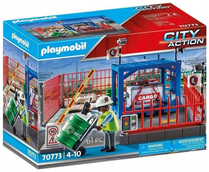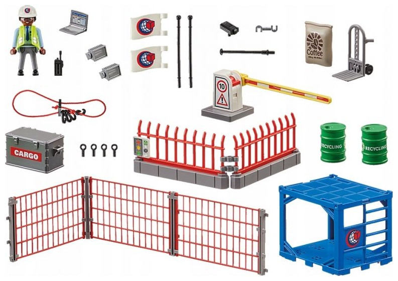 Skład towarów (70773) Odkryj wyjątkowy zestaw Playmobil z serii City ActionJeśli transport nie może być kontynuowany natychmiast, towary są deponowane w magazynie frachtowym. Niezależnie od tego, czy chodzi o pojemniki, beczki czy worki - wszystko jest bezpiecznie przechowywane w magazynie towarowym. Właśnie przybył nowy pojemnik, który należy tymczasowo przechowywać przez kilka dni. Dla bezpieczeństwa pracownik portowy mocuje również kontener do płyty podstawy za pomocą liny. Teraz już nic nie może się poślizgnąć. Zestaw do zabawy zawiera figurkę PLAYMOBIL, elementy ogrodzenia, barierkę, moduł kontenera i wiele innych dodatków.Zawartość opakowania: 1 figurka mężczyzny 2 barykady kontener skrzynka, 2 beczki, 3 worki, 1 wózek ręczny, 3 pręty mocujące, 1 linka gumowa, 4 zaczepy do linki gumowej, 2 reflektory, 1 radio, 1 kamera wideo, 1 mocowanie do kamery wideo