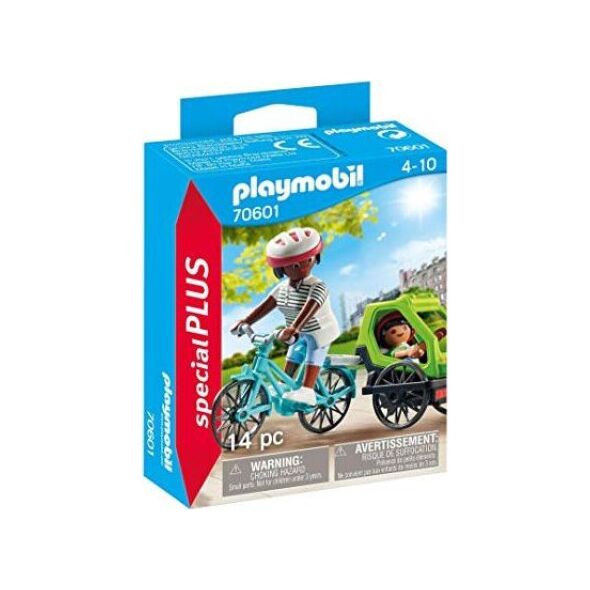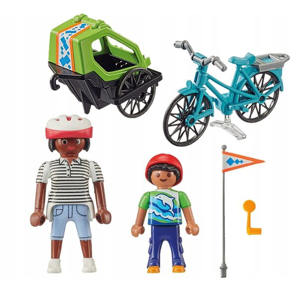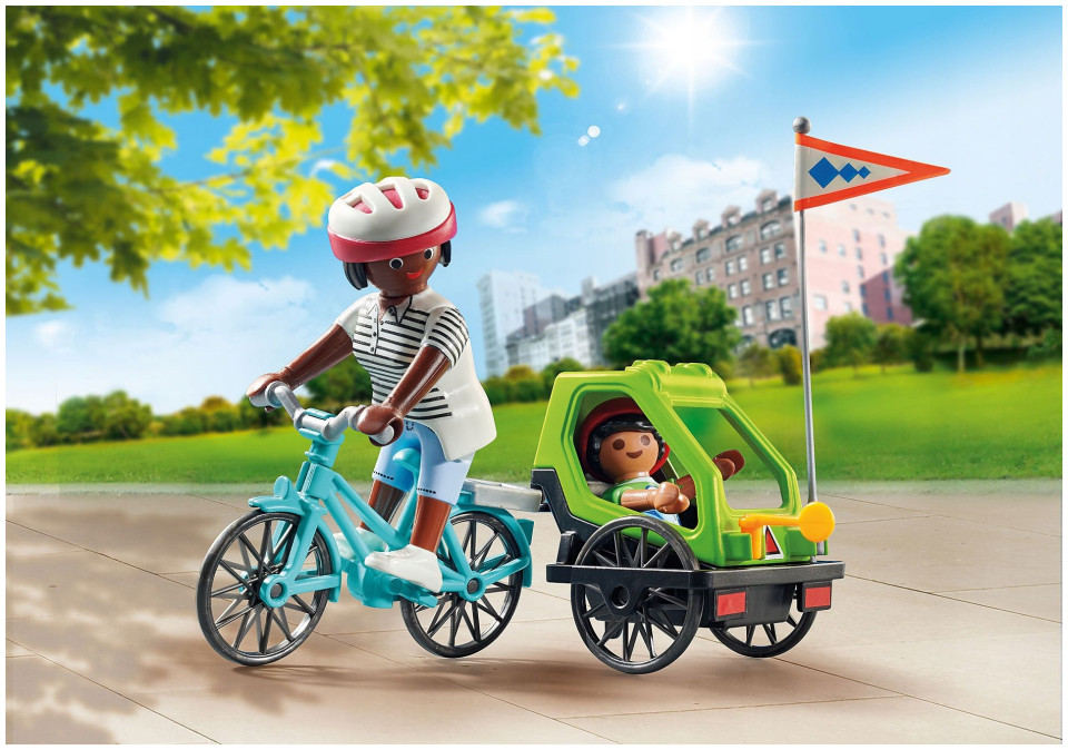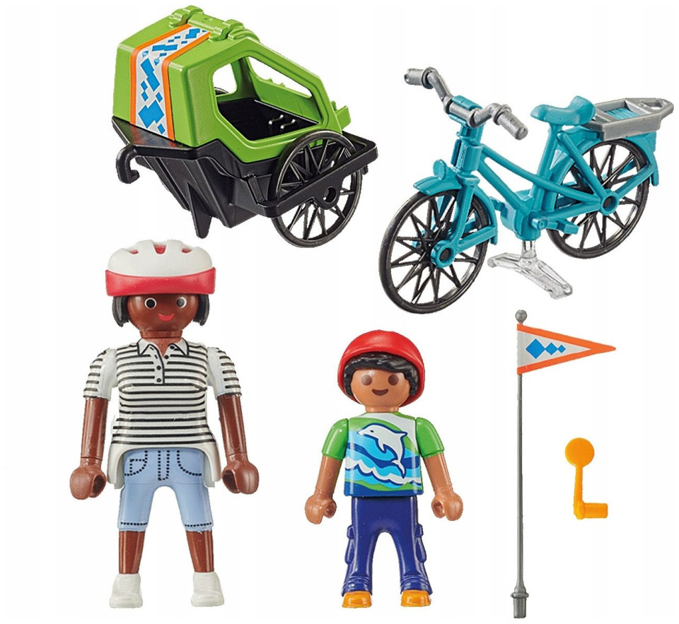 Kiedy tylko jest to możliwe, mama i dziecko wyruszają w drogę na rowerach. Dziś jadą do parku miejskiego. Oczywiście mama ma na sobie kask, a synek siedzi wygodnie w przyczepce rowerowej. Ruszamy! Figurki PLAYMOBIL Special Plus z akcesoriami to idealna pamiątka. Wspaniała zabawa, którą można kolekcjonować, odtwarzać i rozdawać!