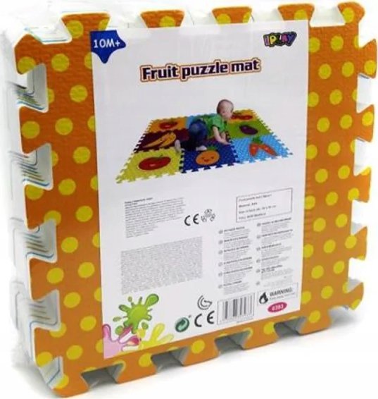 ARTYK PUZZLE PIANKOWE MATA EDUKACYJNA 9 EL. OWOCE 30x30 cm Puzzle piankowe składają się z 9 elementów o wymiarach 30x30 cm są idealnym prezentem dla maluszka. Świetnie się również sprawdzą jako element wystroju pokoju dziecięcego. Puzzle po ułożeniu mogą być używane jako mata o wymiarach 86x86 cm, która jest niezwykle miękka, kolorowa, wzorzysta i interesująca dla małego dziecka. Zalety: z puzzli można tworzyć figury przestrzenne np. kostkę puzzle rozwijają spostrzegawczość, wyobraźnię, zdolności manualne rozwija zdolność rozpoznawania kolorów i kształtów, budowania i tworzenia figur Puzzle są przeznaczone dla dzieci powyżej 10 miesiąca życia. Wykonane z bezpiecznego materiału, spełniają wszystkie normy.Charakterystyka produktu: 9 puzzli 30x30 cm ruchome elementy wykonane z miękkiego i trwałego materiału (pianka EVA) możliwość mycia Dane techniczne: wymiary maty: 86x86 cm wiek: 10m+