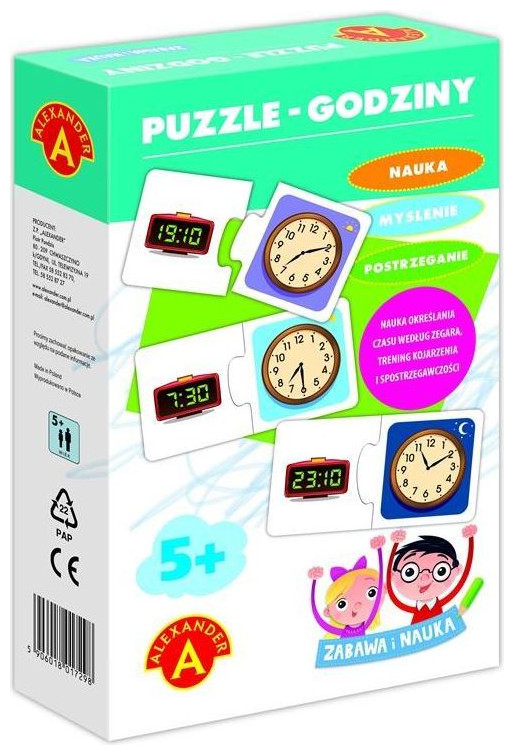 Świetna pomoc dydaktyczna do nauki odczytywania zegara. Zabawa polega na dopasowywaniu do siebie puzzli z rysunkiem zegara wskazówkowego oraz puzzli prezentujacych zegar elektroniczny, wyświatlający te same godziny.