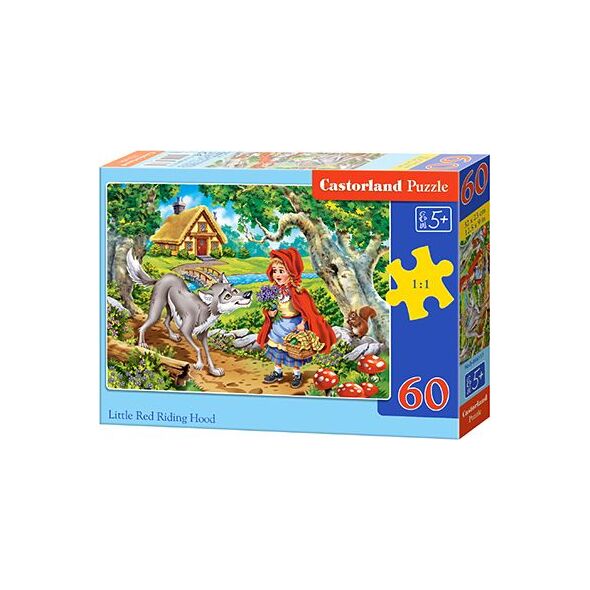 Ένα παιδικό παζλ 60 κομματιών διακοσμημένο με ένα γραφικό που απεικονίζει την Κοκκινοσκουφίτσα και έναν λύκο.{Ηλικία} Από 5 ετών . {Ύψος [cm]} 23 . {Width [cm]} 32 . {Αριθμός στοιχείων} 60 . {Αριθμός εικόνων} 1 . {Θέμα} Κλασικά παραμύθια