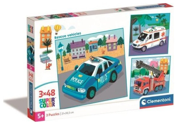 Clementoni Παζλ Super Color Οχήματα διάσωσης 3 x 48 κομμάτια