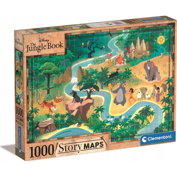 Clementoni Puzzle 1000el Story Maps Księga Dżungli 39816 Clementoni Puzzle składające się z 1000 elementów to prawdziwe wyzwanie dla każdego dużego i małego miłośnika układania. Układanie puzzli to rozwijająca aktywność, która wycisza oraz wymaga cierpliwości, koncentracji i wytrwałości. Uczy najmłodszych spostrzegawczości oraz rozwija ich zdolności manualne i umiejętność logicznego myślenia. Jest to również świetna forma relaksacji i odprężenia w wolnym czasie. Z każdym kolejnym puzzlem dopasowanym do układanki zaczynamy dostrzegać powstający obrazek, co sprawia ogromną satysfakcję. Po ułożeniu układanki powstanie obrazek o wymiarach 69x50cm, przedstawiający mapę opowieści Księga dżungli. Dzięki dużej liczbie elementów puzzle zapewnią wiele godzin wspaniałej zabawy w układanie i będą doskonałym prezentem z okazji urodzin, Dnia Dziecka lub świąt. Wszystkie elementy układanki zostały umieszczone w solidnym, tekturowym pudełku.Kod producenta: 39816 CLEMENTONI