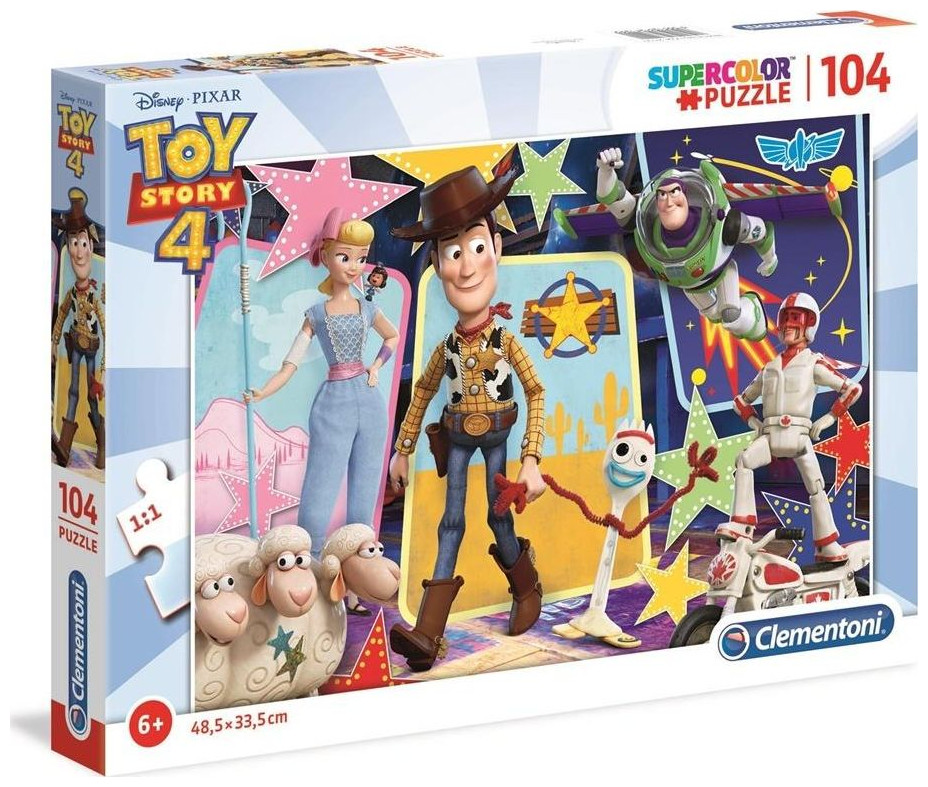Παζλ 104 τεμάχια Super color Toy story 4{Ηλικία} Από 6 ετών. {Αριθμός στοιχείων} 104 . {Ύψος [cm]} 33,5 . {Πλάτος [cm]} 48,5 . {Αριθμός εικόνων} 1 . {Θέμα}Ιστορία παιχνιδιών
