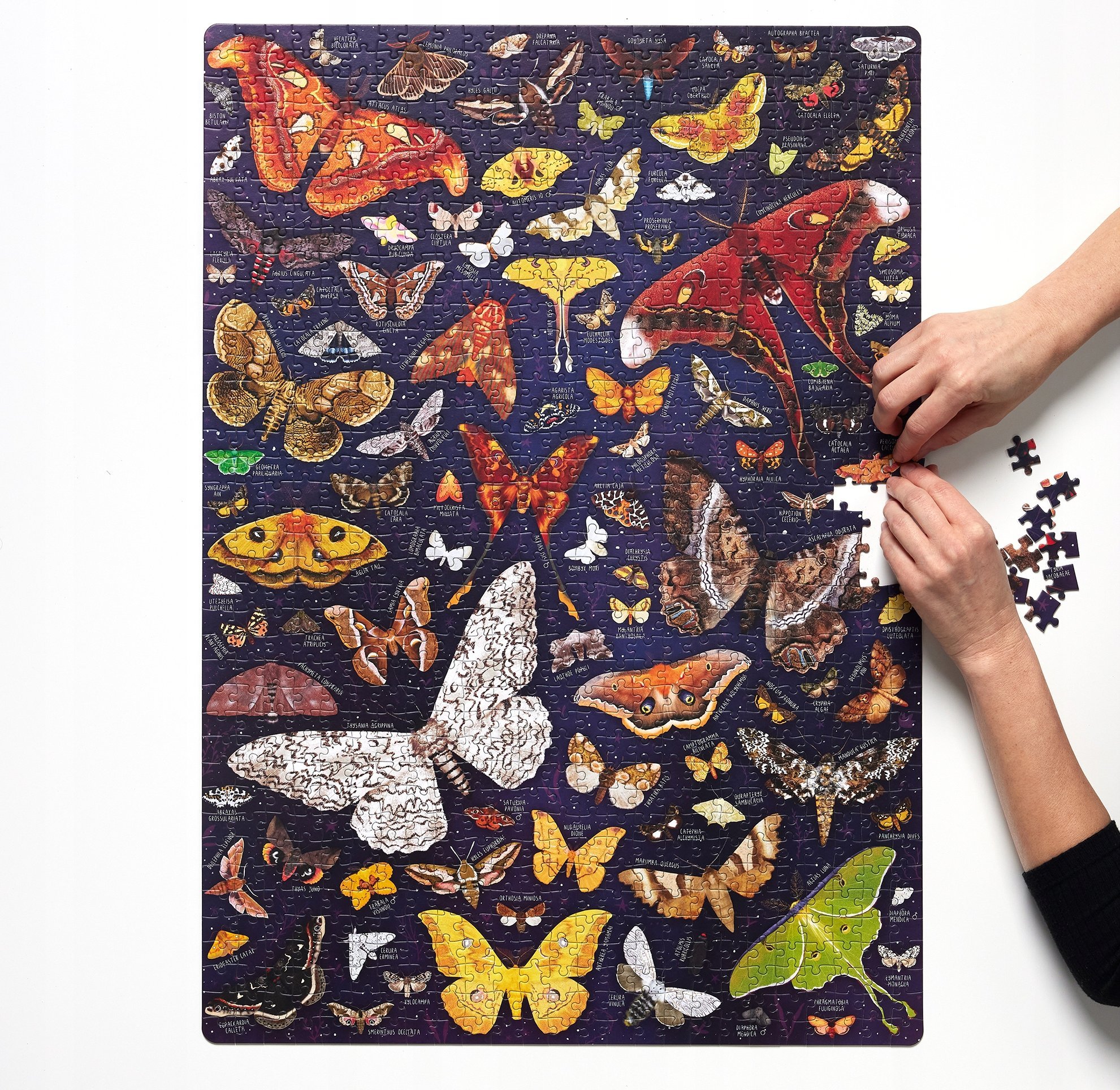 Puzzlove CzuCzu Ćmy puzzle 1000 elementów Pora na całkowite puzzlove zaćmienie! Układanie nocnych owadów to doskonały sposób na relaks i wyciszenie w ulubionym towarzystwie - podejmij wyzwanie! Nastrojowa układanka składa się z 1000 puzzli i przedstawia przeróżne gatunki ciem. Te przepięknie zilustrowane puzzle to pomysł na wyjątkowy prezent dla wielbicieli przyrody i tych, którzy szukają odrobiny magii. zestaw zawiera 1000 elementów wymiar układanki: 48 x 68 cm pudełko o wymiarach 16,5 x 19 x 11 cm duże elementy są wykonane z trwałej tektury doskonałe jako puzzle dla dorosłych Przepis na dobrą zabawę Puzzlove Ćmy to puzzle, które mają 1000 elementów i sprawdzą się jako prezent dla wszystkich, którzy lubią przyrodę i puzzlowe wyzwania. Układajcie je po swojemu: samodzielnie, z rodziną czy przyjaciółmi, po nocnym spacerze, aby mieć piękną ozdobę na ścianę pokoju. Czy znacie wszystkie ćmy z ilustracji?Radość układania Puzzlove CzuCzu Ćmy to idealne puzzle rodzinne, dla starszaków i dorosłych, którzy lubią bardziej skomplikowane układanki. Relaksująca zabawa to sposób na wartościowe spędzanie czasu oraz inspiracja do poszerzania zainteresowań i nowych odkryć. To też doskonały sposób na to, aby wyciszyć się i utrzymywać w formie szare komórki.CzuCzu jest polską marką, którą tworzymy od 2009 r. Książeczki, gry, puzzle i zabawki edukacyjne opieramy na prostych rozwiązaniach, które dają rodzicom i dzieciom przestrzeń do inicjowania własnych pomysłów na zabawę. Podążamy za dziećmi, wspierając ich rozwój motoryczny, emocjonalny i społeczny. Nasze książeczki i zabawki odznaczają się najwyższą jakością wykonania i są dopracowane w najmniejszym szczególe. CzuCzu jest w całości produkowane w Polsce. Wiemy też, że dobra zabawa nie ma górnej granicy wieku! Rośniemy razem z dziećmi, słuchamy naszych klientów i… nas samych, bo w Zespole CzuCzu jest mnóstwo puzzlomaniaków. Stąd pomysł na nową serię Puzzlove CzuCzu, w której znajdziecie duże układanki o zróżnicowanej liczbie elementów. To świetny pomysł na relaks i zabawę dla dzieci, młodzieży i dorosłych. Wiemy, czym jest radość układania.Doceniają nas nie tylko dzieci i rodzice! Z dumą i radością dajemy znać, że w 2020 roku za całokształt naszych działań edukacyjnych dostaliśmy Nagrodę Specjalną w XVIII edycji Konkursu Świat Przyjazny Dziecku organizowanego przez Komitet Ochrony Praw Dziecka.