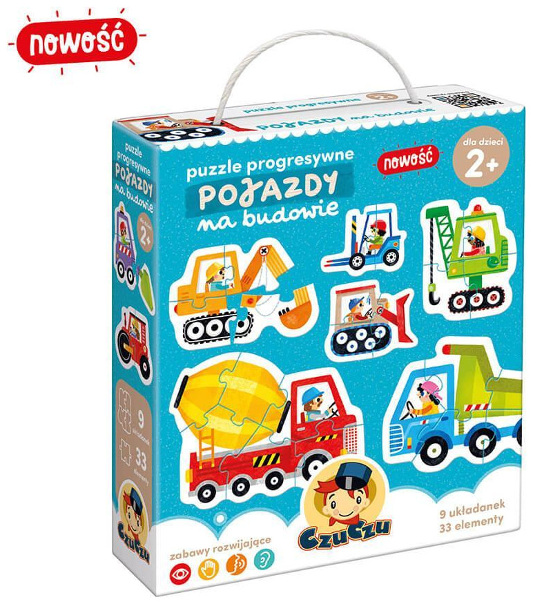 Προοδευτικό παζλ - Οχήματα στο εργοτάξιο Brum, brum! Οχήματα από το εργοτάξιο σας προσκαλούν σε μια περιπέτεια παζλ. Το εύχρηστο κουτί έγινε γκαράζ για 9 υπέροχα μηχανήματα από το εργοτάξιο. Τα 9 παζλ έχουν διαφορετικό αριθμό κομματιών: 2, 3, 4, 5 και 6. Χάρη σε αυτά, τα παιδιά μπορούν να βελτιώσουν την τέχνη της επίλυσης όλο και πιο δύσκολων γρίφων βήμα προς βήμα. Οι χρωματιστές όπισθεν θα βοηθήσουν στο διαχωρισμό των στοιχείων. Όμορφες εικονογραφήσεις, μεγάλα παζλ και το σχήμα τους κάνουν το σετ τέλειο ως το πρώτο παζλ πολλαπλών κομματιών για αρχάριους. Βελτιώστε την ικανότητά σας να συνθέτετε όλο και πιο δύσκολα παζλ με τη νέα σειρά: Βήμα 1: Ζευγαρωμένα παζλ Ζώα στην ύπαιθρο Βήμα 2: Παζλ 4 τεμαχίων Quadruplets Worms Βήμα 3: Προοδευτικά παζλ Οχήματα στο εργοτάξιο και Ζώα στο δάσος. Μοναδικό χαρακτηριστικό: Τα μεγάλα και ανθεκτικά κομμάτια έχουν μέγεθος για μικρά χεράκια. Τα παζλ σας ενθαρρύνουν να παίξετε με διαφορετικούς τρόπους. Διασκεδάστε και εξασκήστε διαφορετικές δεξιότητες. Εμπορικός δείκτης: GXP-816523 Barcode: 5902983491842 Ηλικία ή έτος: από 24 μήνες{Αριθμός στοιχείων} 33 . {Υλικό} Χαρτόνι . Παζλ {Type}