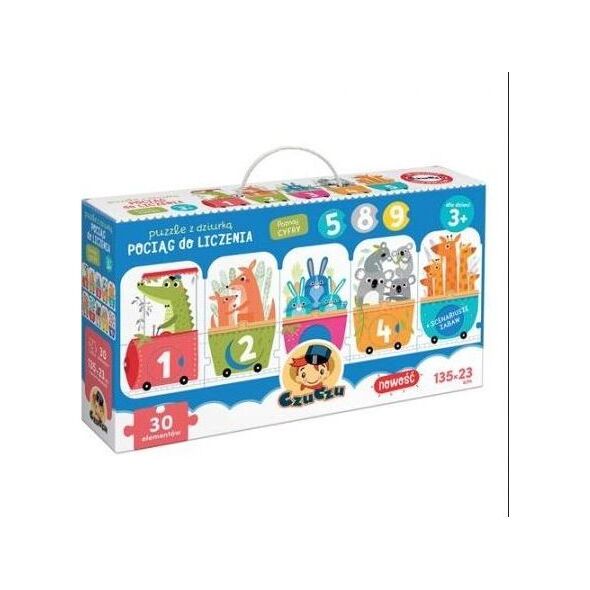 Το εκπαιδευτικό πανοραμικό παζλ δείχνει ένα μακρύ τρένο με διαφορετικό αριθμό επιβατών Αποτελείται από 30 στοιχεία, συμπεριλαμβανομένων 10 αφαιρούμενων κύκλων με αριθμούς. Οι τροχοί και τα στοιχεία με τους επιβάτες μπορούν να αναδιαταχθούν ελεύθερα. Τα παζλ σας εμπνέουν να μάθετε αριθμούς και να μετράτε μέχρι το 10. Το σετ περιλαμβάνει έναν οδηγό γεμάτο ιδέες για εκπαιδευτική διασκέδαση.{Ηλικία} Από 3 ετών. {Ηλικία} Από 3 ετών. {Αριθμός στοιχείων} 30 . {Υλικό} Χαρτόνι . Παζλ {Type}