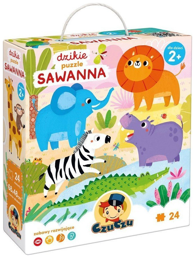 Puzzle Wild puzzle Savannah 24 τεμάχιαΓεια σας, μικροί ταξιδιώτες, θα πάμε στη σαβάνα για να γνωρίσουμε τους κατοίκους της και να ανακαλύψουμε την ομορφιά της άγριας φύσης!