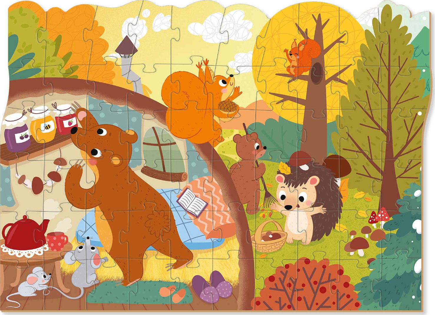 Το σετ αποτελείται από 60 στοιχεία και σας επιτρέπει να δημιουργήσετε ένα σχέδιο με χαριτωμένα ζώα που συλλέγουν προμήθειες το φθινόπωρο Τα παζλ αυτής της σειράς χαρακτηρίζονται από εξαιρετικά ευχάριστα γραφικά.