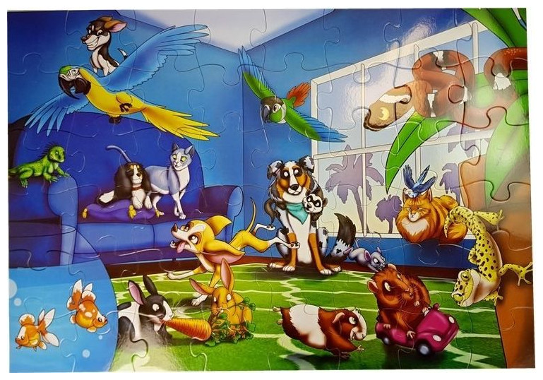 Στην εικόνα που πρόκειται να τακτοποιηθεί, το μικρό παιδί μπορεί να δει την ευτυχισμένη ζωή των κατοικίδιων και να γνωρίσει πώς μοιάζει ένας σκύλος, μια γάτα ή ένας παπαγάλος. Κατά την τακτοποίηση, το παιδί ασκεί ακρίβεια και χειρωνακτικές δεξιότητες, αναπτύσσει τη φαντασία και βελτιώνει τη μνήμη και τη συγκέντρωση. Πολλά θετικά και μεγάλη διασκέδαση. Το νήπιο μαθαίνει για τον κόσμο γύρω του. Τα ωραία και ζωντανά χρώματα θα ενδιαφέρουν και θα απασχολήσουν το παιδί σας. Ο τέλειος τρόπος για να περάσετε τον ελεύθερο χρόνο σας το απόγευμα της Κυριακής.