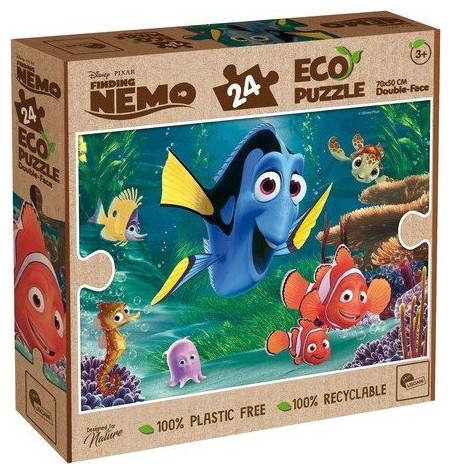 Ένα μοναδικό παζλ διπλής όψης στην οικολογική έκδοση που αποτελείται από 24 στοιχεία. Αυτό που τα ξεχωρίζει είναι το γεγονός ότι όλα τα στοιχεία είναι ανακυκλώσιμα. Κανένα από τα στοιχεία δεν έχει υποστεί ισχυρή χημική επεξεργασία, επομένως τα ορατά ζωντανά χρώματα μπορεί να εξασθενίσουν ελαφρώς με την πάροδο του χρόνου - χάρη σε αυτό, τα στοιχεία παραμένουν σε αρμονία με το φυσικό περιβάλλον και δεν έχουν αρνητικό αντίκτυπο σε αυτό. Όταν τακτοποιηθούν, δημιουργούν μια εικόνα διαστάσεων 70 x 50 cm. Τα παζλ διπλής όψης προσφέρουν διπλάσια διασκέδαση! Αφού λύσει την εικόνα, το παιδί μπορεί να χρωματίσει μια πανομοιότυπη εικόνα στην άλλη πλευρά του παζλ.{Ηλικία} Από 3 ετών . {Αριθμός στοιχείων} 24 . {Αριθμός εικόνων} 1 . {Θέμα} Εύρεση του Νέμο