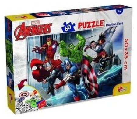 Baw się świetnie odtwarzając najlepsze sceny z kreskówki AVENGERS! Układaj dwustronne puzzle, tworząc piękny obrazek lub koloruj jego czarno-biały odpowiednik, starając się odtworzyć kolory z kreskówki lub nadając całej scence nowego charakteru. Produkt zawiera 60 elementów.Producent: LiscianiWymiary: 350x245 mmGrupa wiekowa: 3+Opakowanie: karton