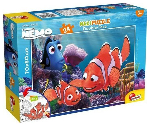 Ένα μοναδικό παζλ διπλής όψης που αποτελείται από 24 στοιχεία. Όταν τακτοποιηθούν, δημιουργούν μια εικόνα διαστάσεων 70 x 50 cm. Τα παζλ διπλής όψης προσφέρουν διπλάσια διασκέδαση! Αφού λύσει την εικόνα, το παιδί μπορεί να χρωματίσει μια πανομοιότυπη εικόνα στην άλλη πλευρά του παζλ.{Ηλικία} Από 3 ετών. {Αριθμός στοιχείων} 24 . {Αριθμός εικόνων} 1 . {Θέμα} Εύρεση του Νέμο