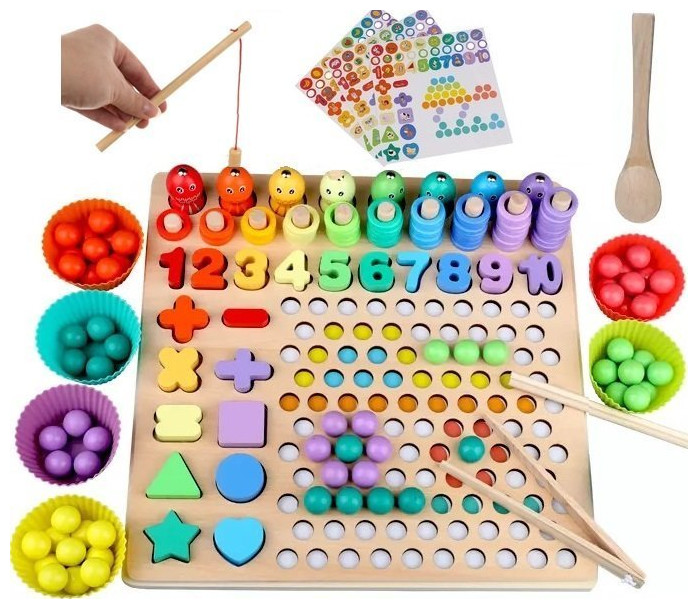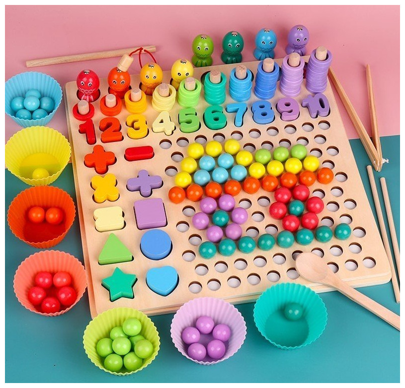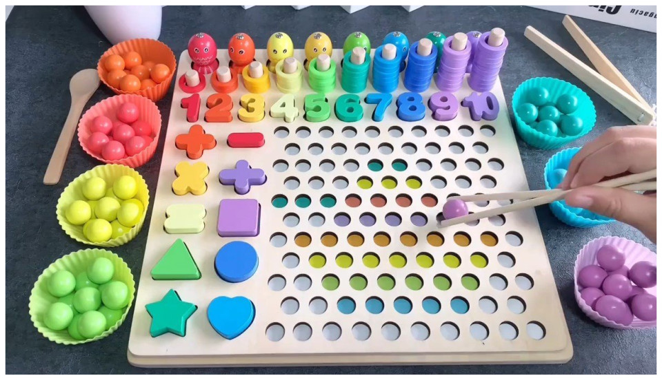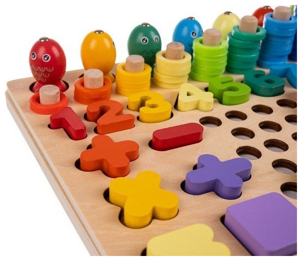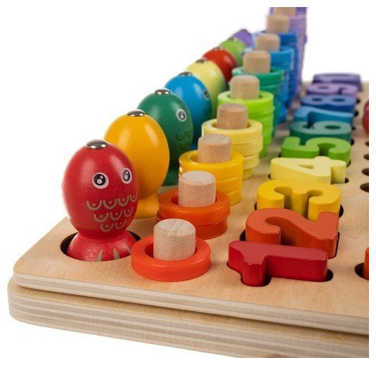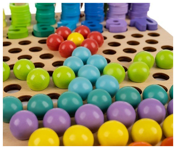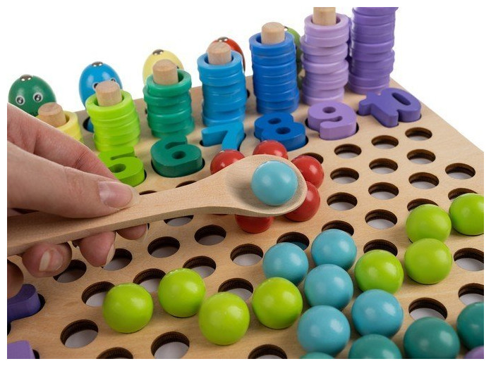 ΔΙΔΑΣΚΕΙ - ένα παζλ με ξύλινες χάντρες είναι επίσης πολύ καλό για την εκμάθηση αριθμών και μπορεί επίσης να είναι χρήσιμο στην εκτέλεση απλών μαθηματικών πράξεων. Με τη βοήθειά του, το παιδί θα μάθει γρήγορα να αναγνωρίζει τα χρώματα και να δημιουργεί γεωμετρικές φιγούρες από χάντρες.