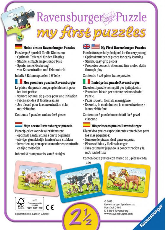 Τα παζλ από τη σειρά «Το πρώτο μου παζλ» είναι παζλ που δημιουργήθηκαν για τα μικρότερα παιδιά. Οι εικόνες πολλαπλών στοιχείων παρουσιάζουν ενδιαφέροντα μοτίβα που προσεγγίζουν τα παιδιά. Θα τους εξοικειώσουν με τον περιβάλλοντα κόσμο και τα φαινόμενα.