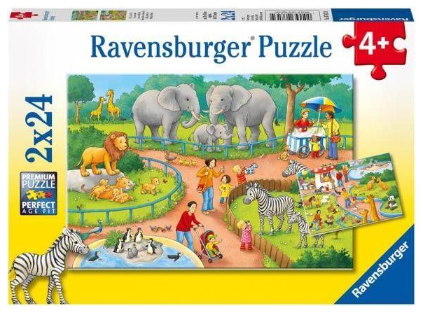 Το παζλ Ravensburger 2x24 τεμαχίων αποτελείται από 2 παζλ με 24 κομμάτια το καθένα, που απεικονίζουν ζώα σε ζωολογικό κήπο.