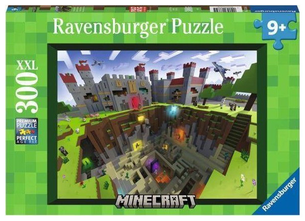 Παζλ Ravensburger 300 κομματιών με θέμα το Minecraft. Η Ravensburger είναι ο μεγαλύτερος κατασκευαστής παζλ στον κόσμο, τα οποία παράγει για πάνω από 120 χρόνια. Τα παζλ Ravensburger έχουν αντιανακλαστική επίστρωση - είναι κατασκευασμένα από πατενταρισμένο, χοντρό χαρτόνι με μαλακή επένδυση (η εικόνα είναι τυπωμένη σε χαρτί με δομή λινών ινών, η οποία μειώνει την ανάκλαση του φωτός, διευκολύνει τη συναρμολόγηση και την ίδια την εικόνα , ανεξάρτητα από το μέγεθος του παζλ, είναι πιο ξεκάθαρο). Επιπλέον, χάρη στην πατενταρισμένη τεχνολογία SoftClick, κάθε μεμονωμένο κομμάτι παζλ Ravensburger έχει μοναδικό σχήμα και χωράει μόνο σε ένα μέρος. Τα σχήματα των παζλ ποικίλλουν χάρη στο χειροποίητο καλούπι. Τα παζλ Ravensburger είναι ανθεκτικά στο λύγισμα.{Αριθμός αντικειμένων} 300 . {Ηλικία} Από 9 ετών. {Αριθμός εικόνων} 1 . {Θέμα} Παιχνίδια στον υπολογιστή