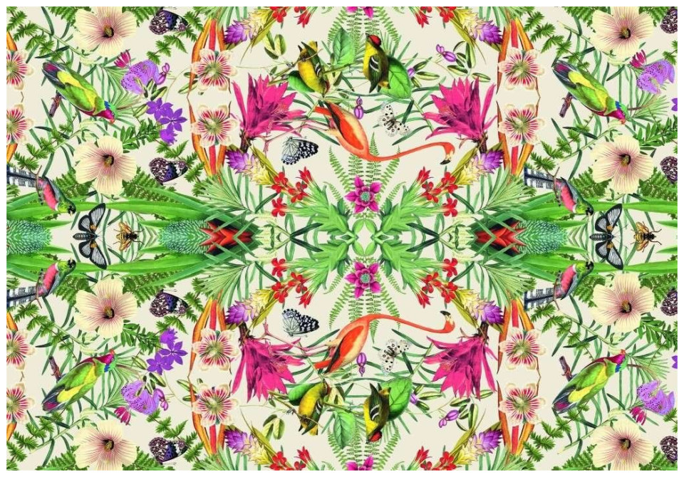 Το παζλ δείχνει μια εξαιρετικά πολύχρωμη εικόνα λουλουδιών και πεταλούδων.