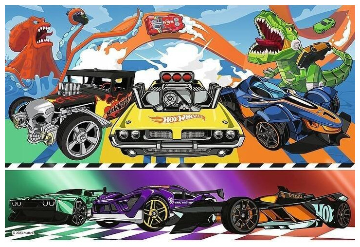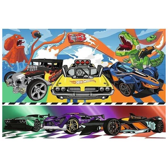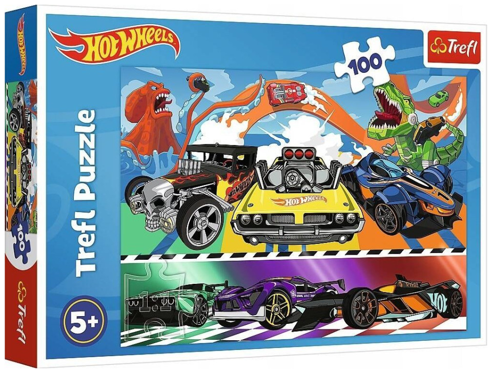 PĘDZĄCE SAMOCHODY to puzzle składające się ze 100 elementów stworzone z myślą o wszystkich wielbicielach pojazdów Hot Wheels . Po ułożeniu powstanie obrazek o wymiarach 410x278 mm