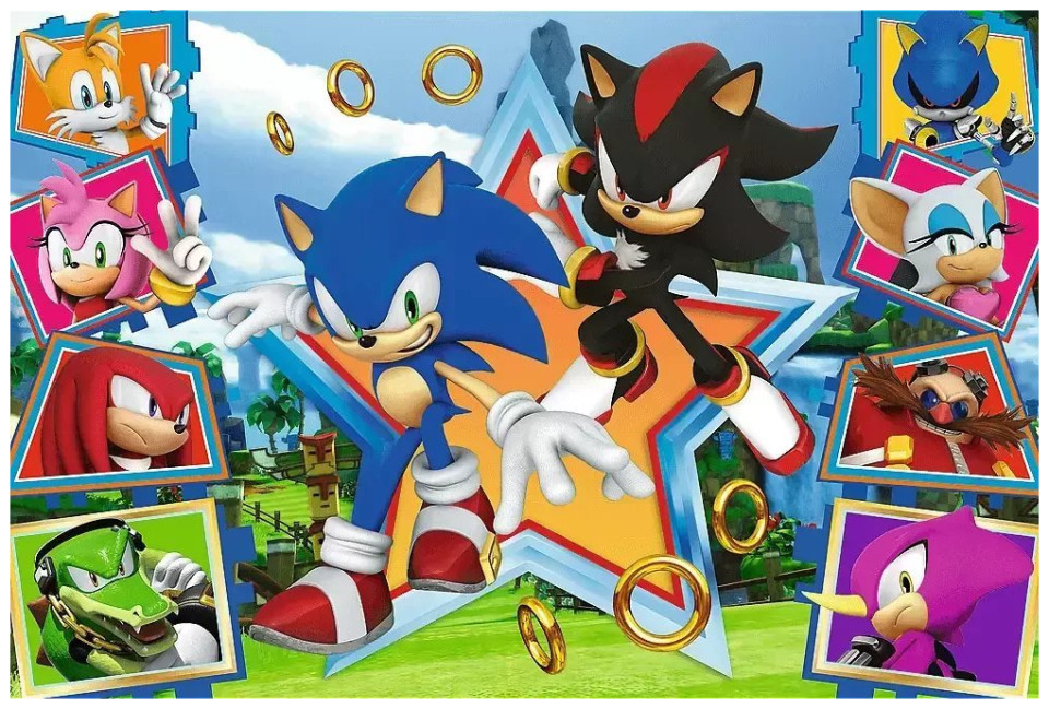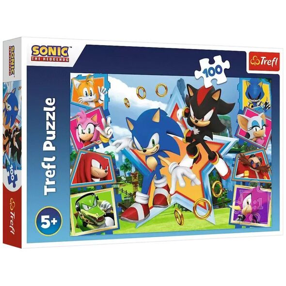 Poznaj Sonica to puzzle składające się ze 100 elementów, zaprojektowane z myślą o wszystkich fanach i fankach Sonica. Po ułożeniu układanek powstanie obrazek o wymiarach 41x27,5 cm z głównymi bohaterami bajki.