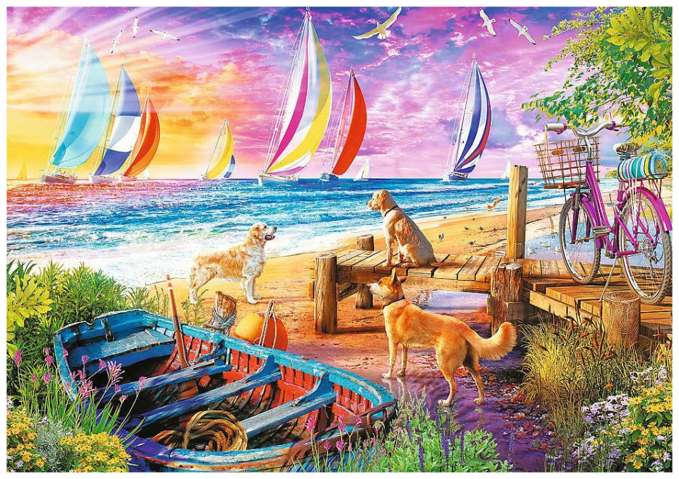 Το σετ αποτελείται από 1.000 στοιχεία και σας επιτρέπει να δημιουργήσετε μια όμορφη εικόνα που δείχνει θέα ιστιοφόρων και σκύλων στην προβλήτα και στην άμμο. Η συναρμολογημένη εικόνα έχει διαστάσεις 68,3 x 48 cm.
