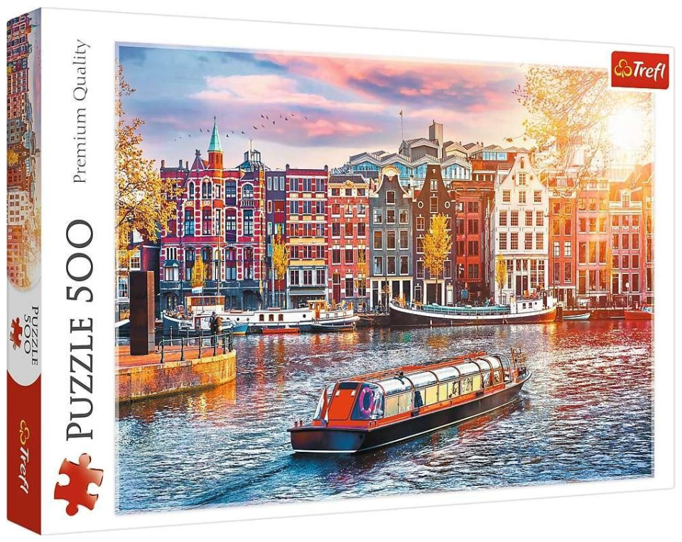 Amsterdam Holandia to puzzle 500 elementów przedstawiające piękny widok na miasto. Po ułożeniu powstanie obrazek o wymiarach 48x34 cm. Wysoką jakość, nasycenie kolorów i bezpieczeństwo układania zapewnia kalandrowany papier odbijający światło, pokryty ekologicznymi farbami spożywczymi. Indeks handlowy: GXP-830350 Kod kreskowy: 5900511374285 Wiek lub rocznik: od 10 lat