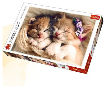 Παζλ 500 κομματιών που απεικονίζει γατάκια που κοιμούνται. Μετά την τακτοποίηση, θα δημιουργήσετε μια εικόνα διαστάσεων 48x34 cm. Η υψηλή ποιότητα, ο κορεσμός των χρωμάτων και η ασφαλής στοίβαξη διασφαλίζονται από καλανταρισμένο χαρτί που αντανακλά το φως, καλυμμένο με οικολογικές βαφές τροφίμων.