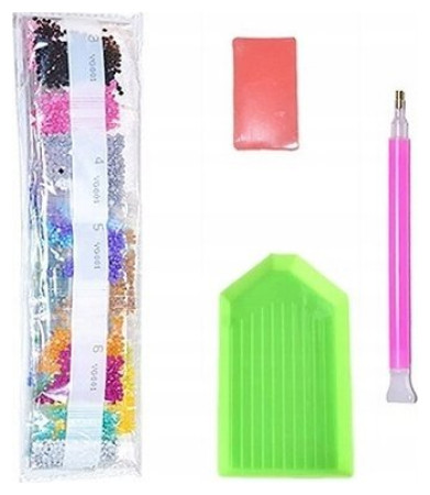 Malowanie diamentami, inaczej haft diamentowy lub mozaika diamentowa, to akrylowe kamienie o różnych barwach, które nakleja się według wzoru na tkaninie, tworząc oszałamiającą diamentową mozaikę. Haft diamentowy jest doskonałym sposobem na relaks i odpoczynek. Przynosi radość, pobudza naszą wyobraźnię i rozwija umiejętności manualne. Obraz z kamieni diamentowych może być wspaniałym prezentem. Piękne kolory, interesujące wzory o różnorodnej tematyce i wysokiej jakości akcesoria zadowolą nawet najbardziej wymagających miłośników tej uroczej techniki. Wymiary 30x40 cmInstrukcja użytkowania: 1) Przed rozpoczęciem przygotuj miejsce pracy i rozpakuj zestaw. 2) Znajdź symbole i numery kamieni, które chcesz nakleić w danym momencie. 3) Użyj dołączonego podstawienia i umieść w nim wybrane kamienie. 4) Delikatnie potrząśnij tacką. 5) Dołóż aplikator do wosku. 6) Podnieś kamień za pomocą aplikatora. 7) Usuń folię ochronną z odpowiedniego obszaru płótna, następnie umieść kamienie w odpowiednich polach. 8) Po zakończeniu wyprostuj płótno, przykładając książkę