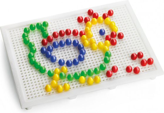 Τα παιδιά μπορούν να δημιουργήσουν τα πρώτα τους μωσαϊκά ή να αντιγράψουν παραδείγματα από το άλμπουμ. Το παιχνίδι περιλαμβάνει την εισαγωγή άθραυστων μανταλιών διαφόρων μεγεθών σε μια διάτρητη σανίδα. Το παιχνίδι αναπτύσσει τη δημιουργικότητα και ασκεί το συντονισμό ματιού-χεριού Περιεχόμενα: 100 μανταλάκια με διάμετρο 10 mm, μια διάτρητη σανίδα, ένα άλμπουμ με παραδείγματα για ηλικίες από 4 ετών.{Ηλικία} Από 4 ετών. {Ηλικία} Από 4 ετών. Μωσαϊκό κουμπιών {Type}. {Type}Μωσαϊκό κουμπιών