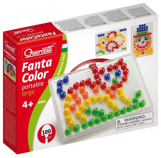 Τα παιδιά μπορούν να δημιουργήσουν τα πρώτα τους μωσαϊκά ή να αντιγράψουν παραδείγματα από το άλμπουμ. Το παιχνίδι περιλαμβάνει την εισαγωγή άθραυστων μανταλιών σε μια διάτρητη σανίδα. Το τελειωμένο μωσαϊκό μπορεί να κρεμαστεί στον τοίχο για να διακοσμήσει το δωμάτιο με πρωτότυπο τρόπο. Όλα τα στοιχεία αποθηκεύονται σε μια εύχρηστη βαλίτσα που μπορεί να μεταφερθεί ελεύθερα. Το παιχνίδι αναπτύσσει τη δημιουργικότητα και ασκεί το συντονισμό ματιού-χεριού.{Type}Μωσαϊκό κουμπιών