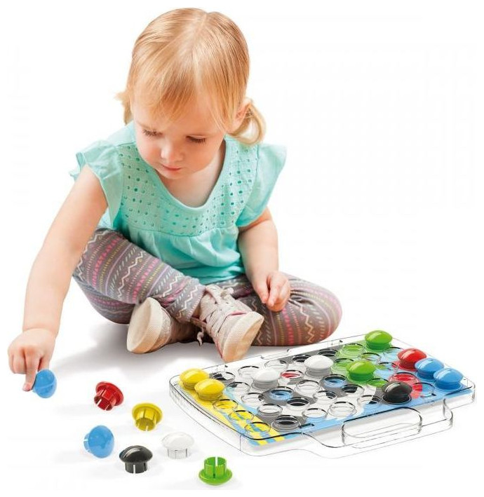 Η δημιουργία ενός μωσαϊκού με την εισαγωγή μανταλιών σε έναν διάτρητο πίνακα είναι ένα υπέροχο και δημιουργικό παιχνίδι που διεγείρει την αναγνώριση χρώματος, αναπτύσσει χειρωνακτικές δεξιότητες και κινητικό συντονισμό. Όλα τα στοιχεία είναι κατασκευασμένα από υψηλής ποιότητας υλικό, είναι εύκαμπτα και έχουν ασφαλείς, στρογγυλεμένες άκρες.