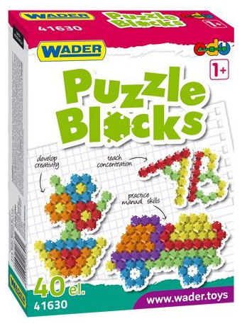 Klocki-mozaika składające się jak puzzle. Zestaw 40szt różnokolorowych klocków w kolorowym kartoniku Możliwość układania nie tylko : zwierzątek, budowli, autek itp., ale też literek, cyferek. Edukacja i zabawa w jednym.