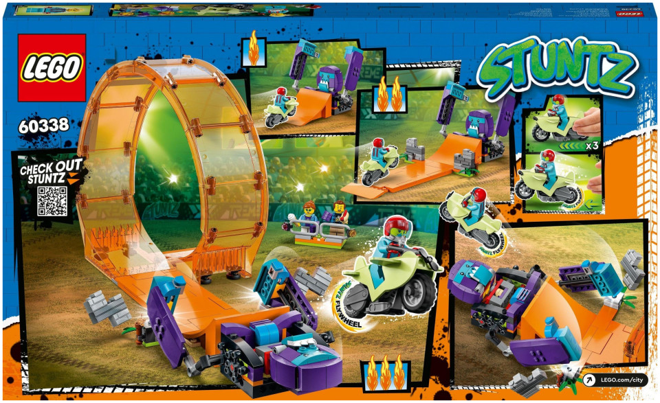 Πραγματικά ακροβατικά - ετοιμαστείτε για μια συναρπαστική εμφάνιση με το σετ LEGO® City Stunt Loop and Demolition Chimpanzee (60338), με μια μοτοσυκλέτα με βολάν και 3 μίνι φιγούρες