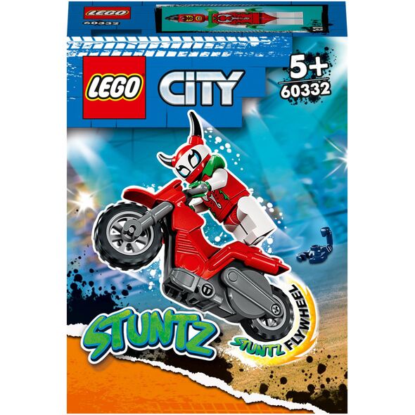 Τα παιδιά θα λατρέψουν να παίζουν με το σετ LEGO® City Daring Scorpion Stunt Bike (60332). Μέσα θα βρείτε μια δροσερή μοτοσυκλέτα με βολάν, μια φιγούρα LEGO City Stuntz Scorpion Luchadora και μια φιγούρα του μικρού της φίλου σκορπιού. Αυτό το δηλητηριώδες ντουέτο θα ενθουσιάσει κάθε κοινό!