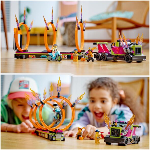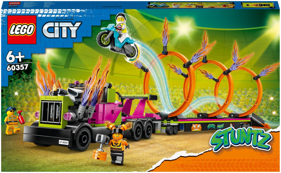 Ασταμάτητα ακροβατικά - δημιουργήστε συναρπαστικά σόου και διαγωνισμούς με το LEGO® City Truck and Fire Rings Stunt Challenge (60357)