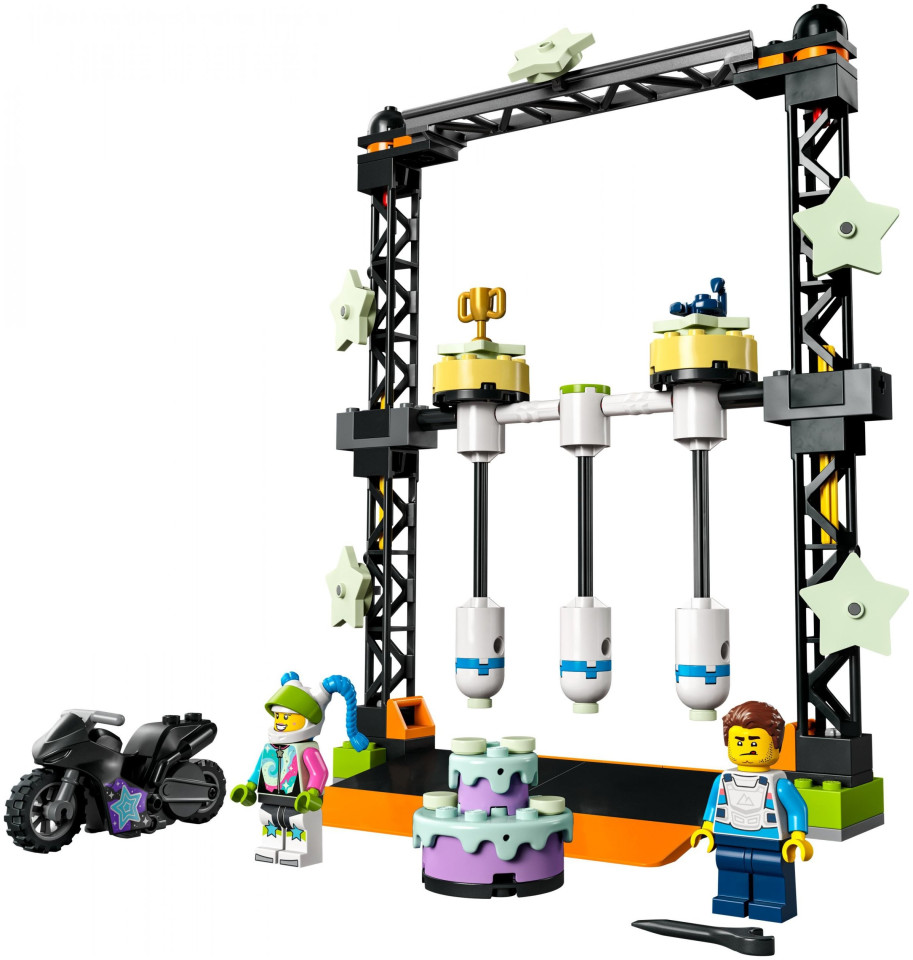 Dzieciom, które lubią współzawodnictwo, spodoba się zestaw LEGO® City Wyzwanie kaskaderskie: przewracanie (60341) ze świecącymi w ciemności elementami. Dzieci mogą uruchomić motocykl napędzany kołem zamachowym, by trafić w kolumnę i wygrać nagrodę. Dwie popularne postacie z serialu telewizyjnego LEGO City sprawiają, że zabawa jest jeszcze wspanialsza, a dodatkowo zestaw można połączyć z innymi zabawkami z serii LEGO City Stuntz.