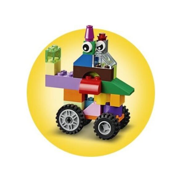 Αυτή η συλλογή από τούβλα LEGO σε 35 διαφορετικά χρώματα έχει σχεδιαστεί για να εμπνέει τη φαντασία των κατασκευαστών όλων των ηλικιών και να ενθαρρύνει την απεριόριστη διασκέδαση στην κατασκευή. Παράθυρα, μάτια και πολλοί τροχοί προσθέτουν στη διασκέδαση και προσφέρουν ατελείωτες δυνατότητες για δημιουργική κατασκευή οχημάτων. Το σετ περιλαμβάνει ιδέες για τα πρώτα μοντέλα και ένα βολικό πλαστικό κουτί και είναι μια τέλεια προσθήκη σε κάθε συλλογή LEGO.