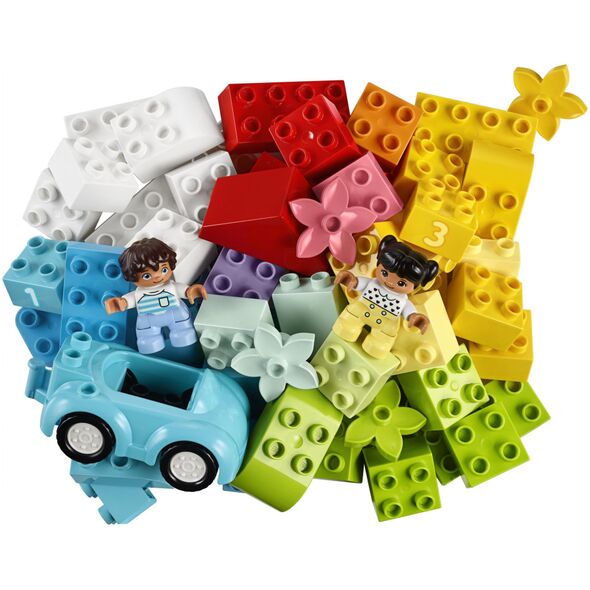 Όλα τα ενδιαφέροντα χρώματα, σχήματα, αντικείμενα, φιγούρες και αριθμοί μπορούν να αποθηκευτούν άνετα σε ένα ωραίο δοχείο LEGO® DUPLO®. Μπορούν επίσης να συνδυαστούν με άλλα σετ DUPLO για να δημιουργήσουν ακόμα μεγαλύτερες δημιουργίες.