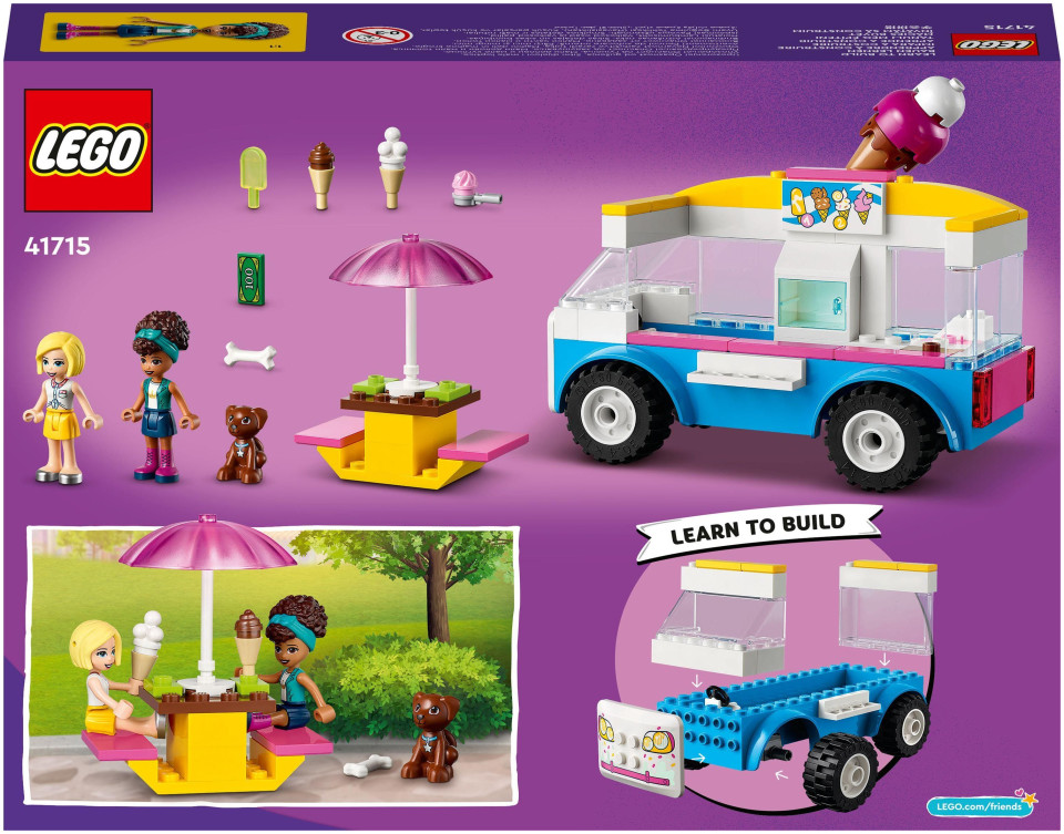 Ένα γαστρονομικό παιχνίδι που ενθαρρύνει τη φαντασία, το σετ LEGO® Friends Ice Cream Truck (41715) προσφέρει ώρες διασκέδασης για αγόρια και κορίτσια τεσσάρων ετών και άνω. Τα παιδιά μπορούν να παίξουν το ρόλο ενός παγοπώλη και να περάσουν χρόνο με τους φίλους τους