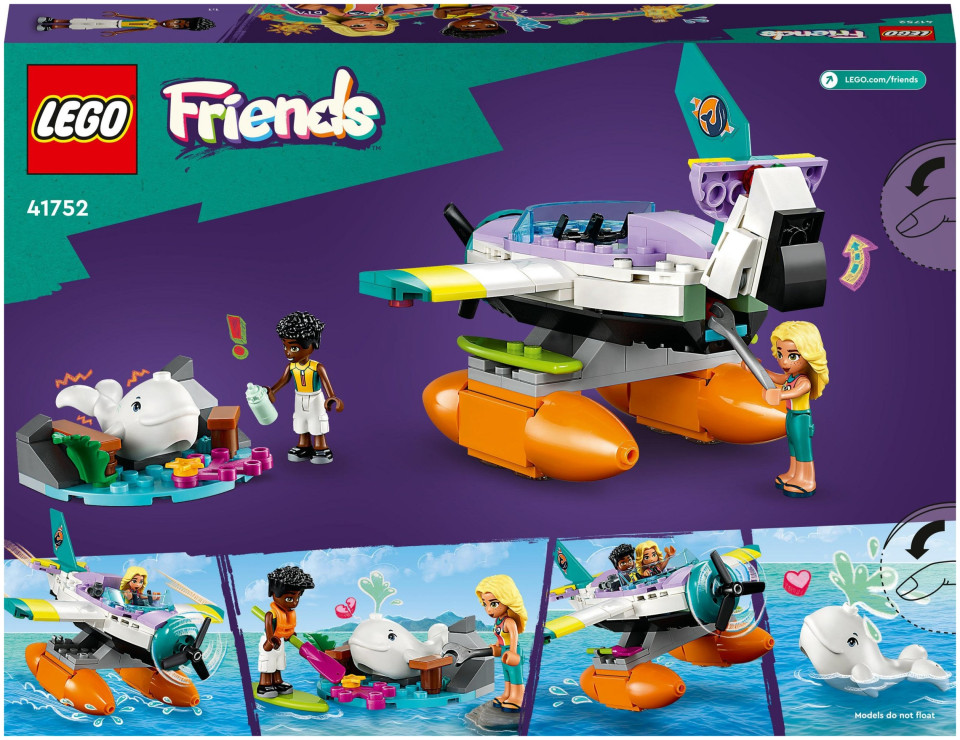 Τα παιδιά ηλικίας 6 ετών και άνω που αγαπούν τη δημιουργική αφήγηση έχουν πολλά να ανακαλύψουν με αυτό το σετ LEGO® Friends Sea Rescue Seaplane (41752). Το σετ περιλαμβάνει 2 φιγούρες μίνι κούκλας, μια φάλαινα και πολλά αξεσουάρ. Τα παιδιά μπορούν να βοηθήσουν τον Ζακ και τον μέντορά του να σώσουν μια παγιδευμένη φάλαινα μπελούγκα. Κατασκευήσιμο υδροπλάνο διάσωσης με 2 θέσεις και αποθηκευτικό χώρο. Η σκηνή της παραλίας περιλαμβάνει την σανίδα κωπηλασίας του Zac και στοιχεία που μπορούν να μετακινηθούν ώστε τα παιδιά να απελευθερώσουν την παγιδευμένη φάλαινα.