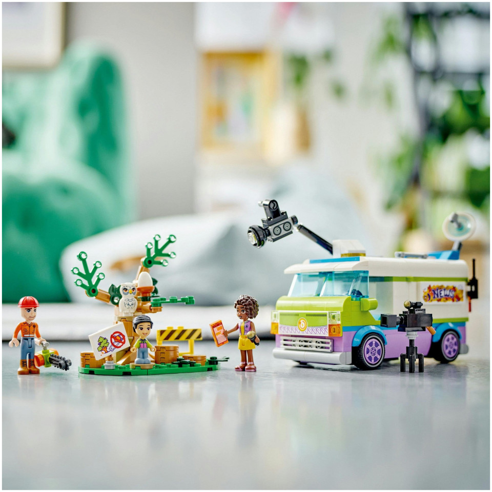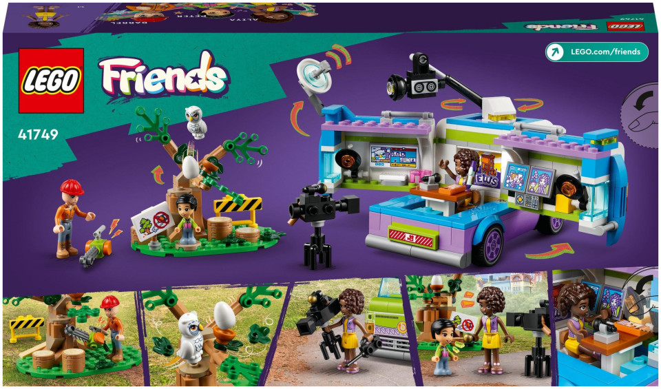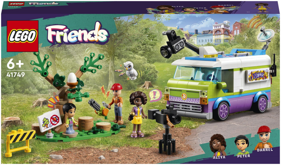 Dzieci, które uwielbiają odgrywać role i interesują się dziką przyrodą, znajdą wiele inspiracji w tym zestawie LEGO® Friends Reporterska furgonetka (41749). Jest on przeznaczony dla dzieci w wieku od sześciu lat. Pracowita Aliya przekazuje najnowsze wieści dla domu kultury. W furgonetce jest wszystko, czego Aliya potrzebuje do tworzenia i udostępniania wiadomości, w tym ekrany, światła, kamery, mikrofony oraz notatnik i długopis. Dzieci mogą opowiedzieć rozwijającą się historię o tym, że drwal ma ściąć drzewo. Po nakręceniu historii dzieci mogą przenieść Aliyę do reżyserki w furgonetce, aby zmontować i nadać wiadomości. Zestaw zawiera dwie minilaleczki, jedną mikrolaleczkę i mnóstwo akcesoriów.