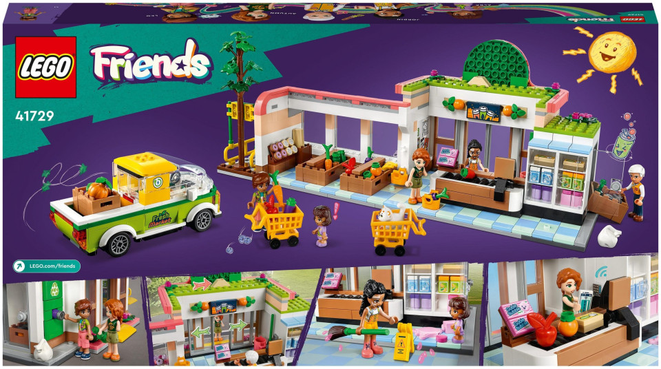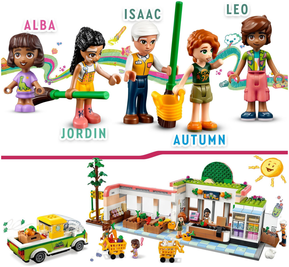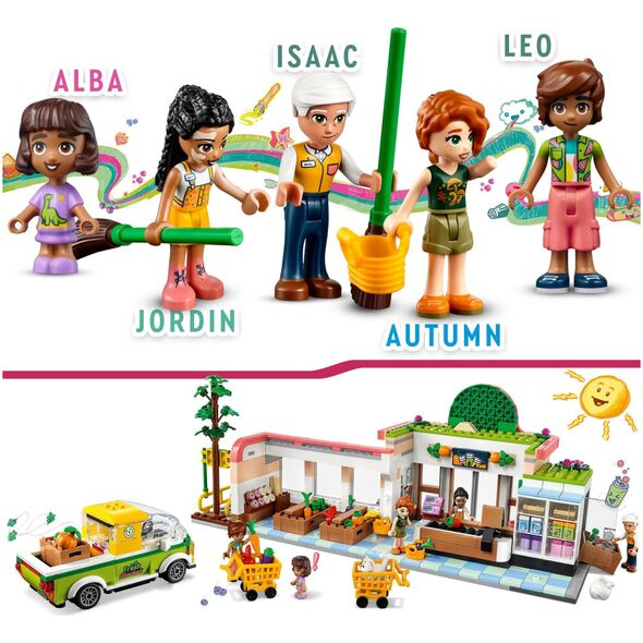 Βοηθήστε τα παιδιά ηλικίας οκτώ ετών και άνω να ασχοληθούν με δημιουργικό παιχνίδι με το σετ LEGO® Friends Organic Grocery Store (41729). Είναι γεμάτο αξεσουάρ καταστημάτων που θα επιτρέψουν στα παιδιά να εξερευνήσουν τα ενδιαφέροντα των χαρακτήρων. Το φθινόπωρο θέλει να προστατεύσει τον πλανήτη, γι' αυτό της αρέσει να επισκέπτεται το κατάστημα βιολογικών τροφίμων. Εδώ συναντά τον φίλο του Λέο, που λατρεύει να μαγειρεύει και να δοκιμάζει νέες συνταγές. Τα παιδιά θα λατρέψουν να ανακαλύπτουν ρεαλιστικά στοιχεία καταστήματος, όπως συρόμενες πόρτες, καρότσια αγορών, σημείο συλλογής απορριμμάτων και ένα φορτηγό παράδοσης. Περιλαμβάνει 4 φιγούρες μίνι κούκλας, καθώς και τη μικρή αδερφή Alba και τη γάτα Churro.